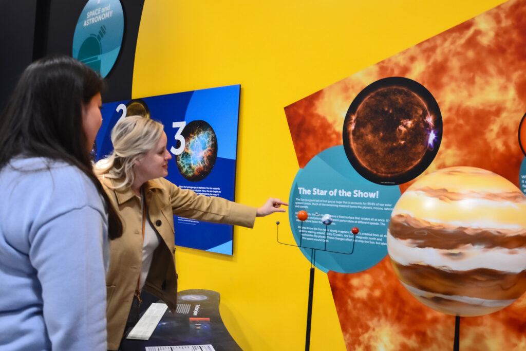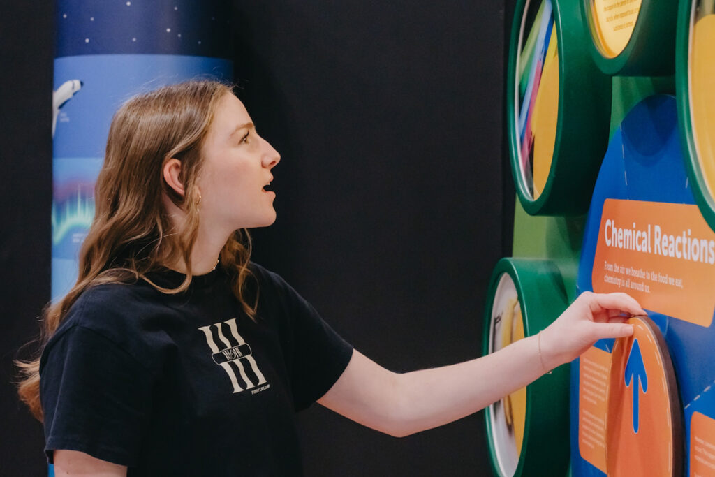 The Chemistry & Environment section helps visitors discover how matter and weather shape our world. A life-sized periodic table, a hands-on weather experience exploring fog, hurricanes, and tornadoes form, and a molecule-building station make chemistry come alive. Interactive activities also show how chemistry is part of everyday life, from the air we breathe to the products we use.